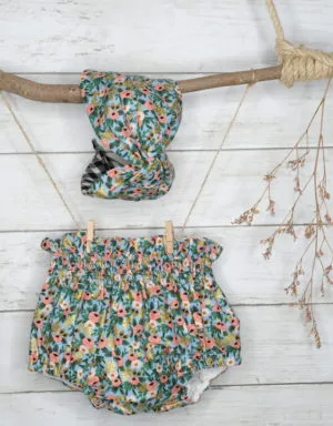 Pack cubrepañal + diadema turbante conejos fondo mint