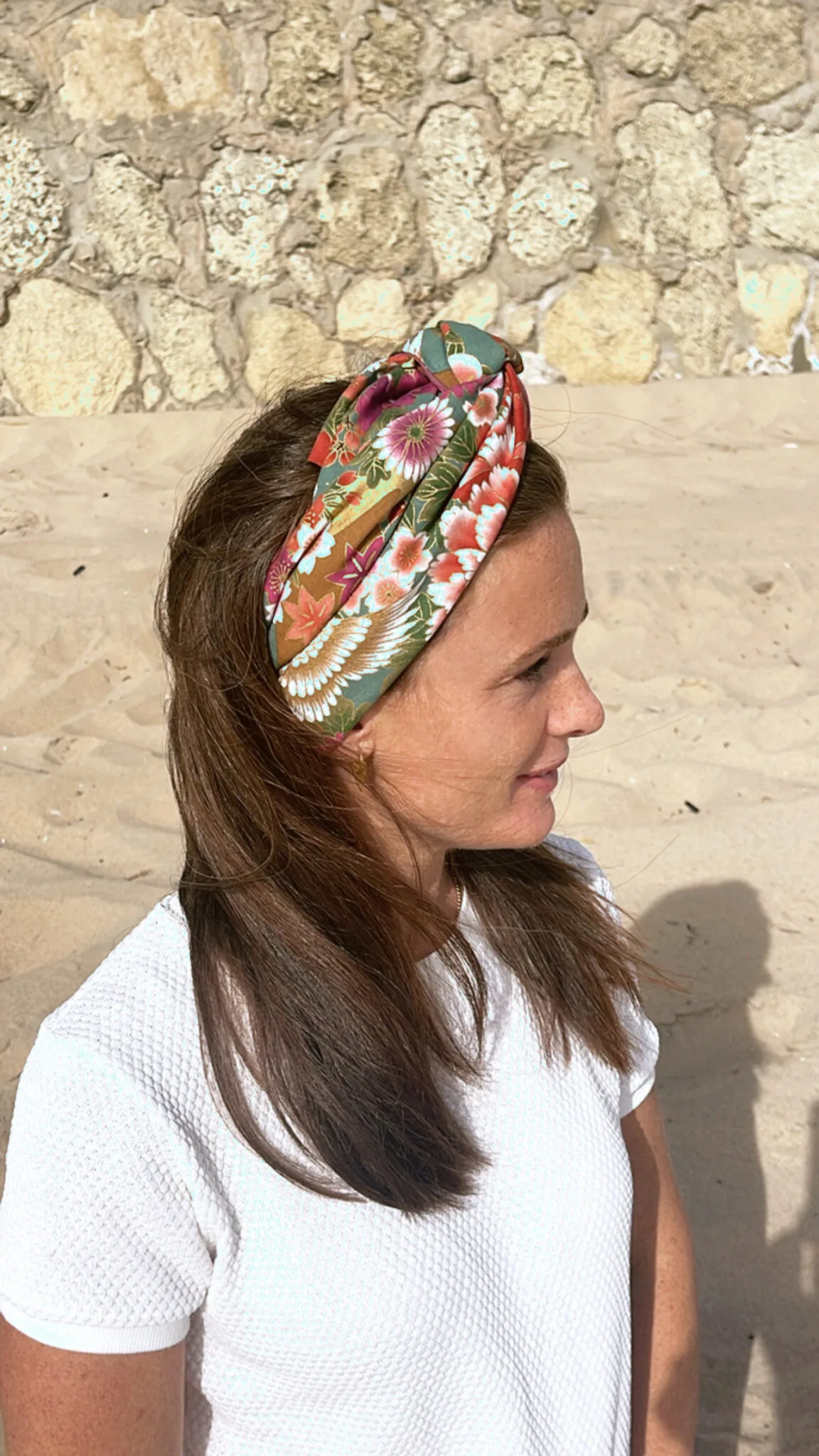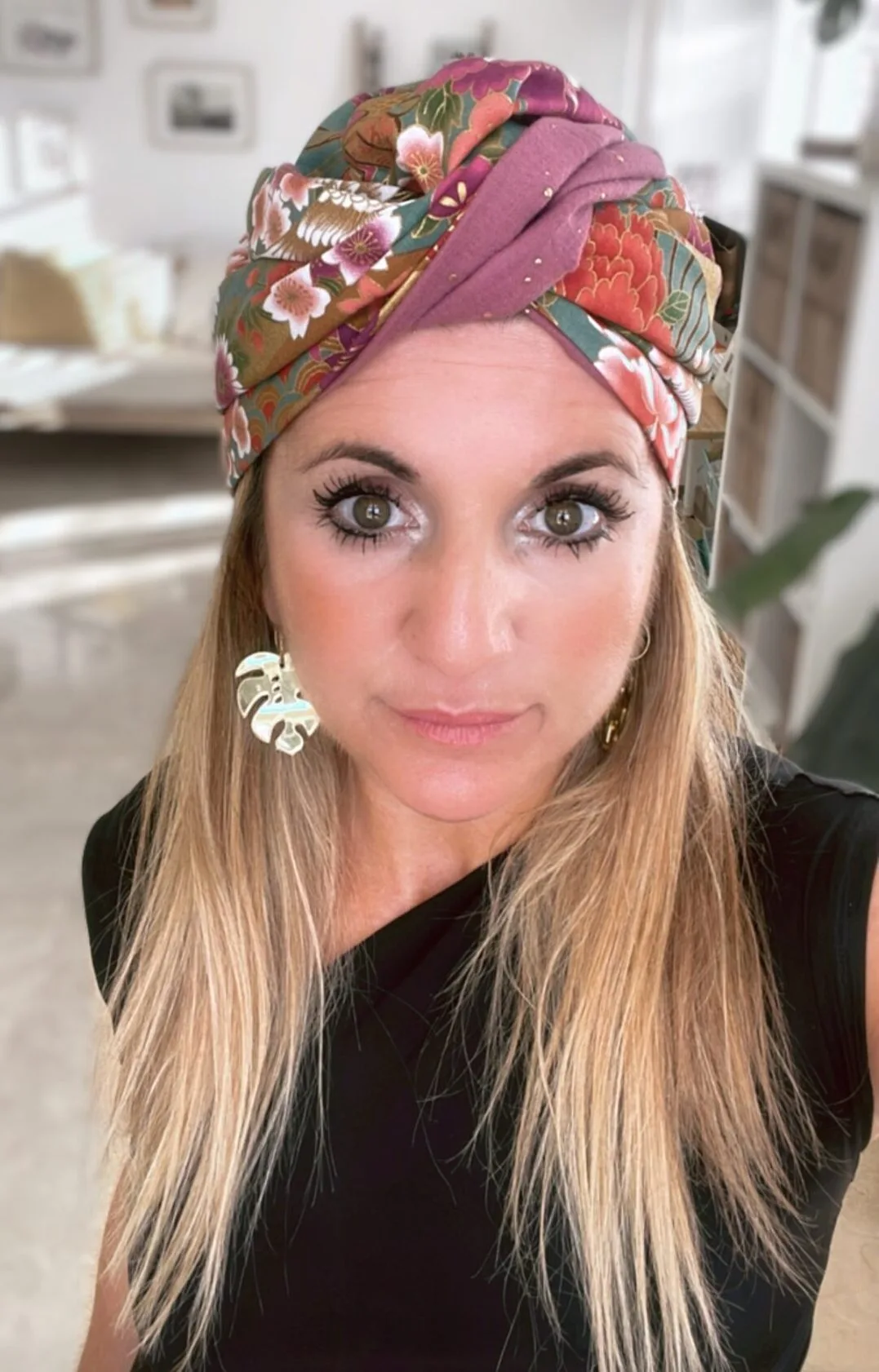 Turbante muy versátil de múltiples posiciones que son varios modelos en uno.