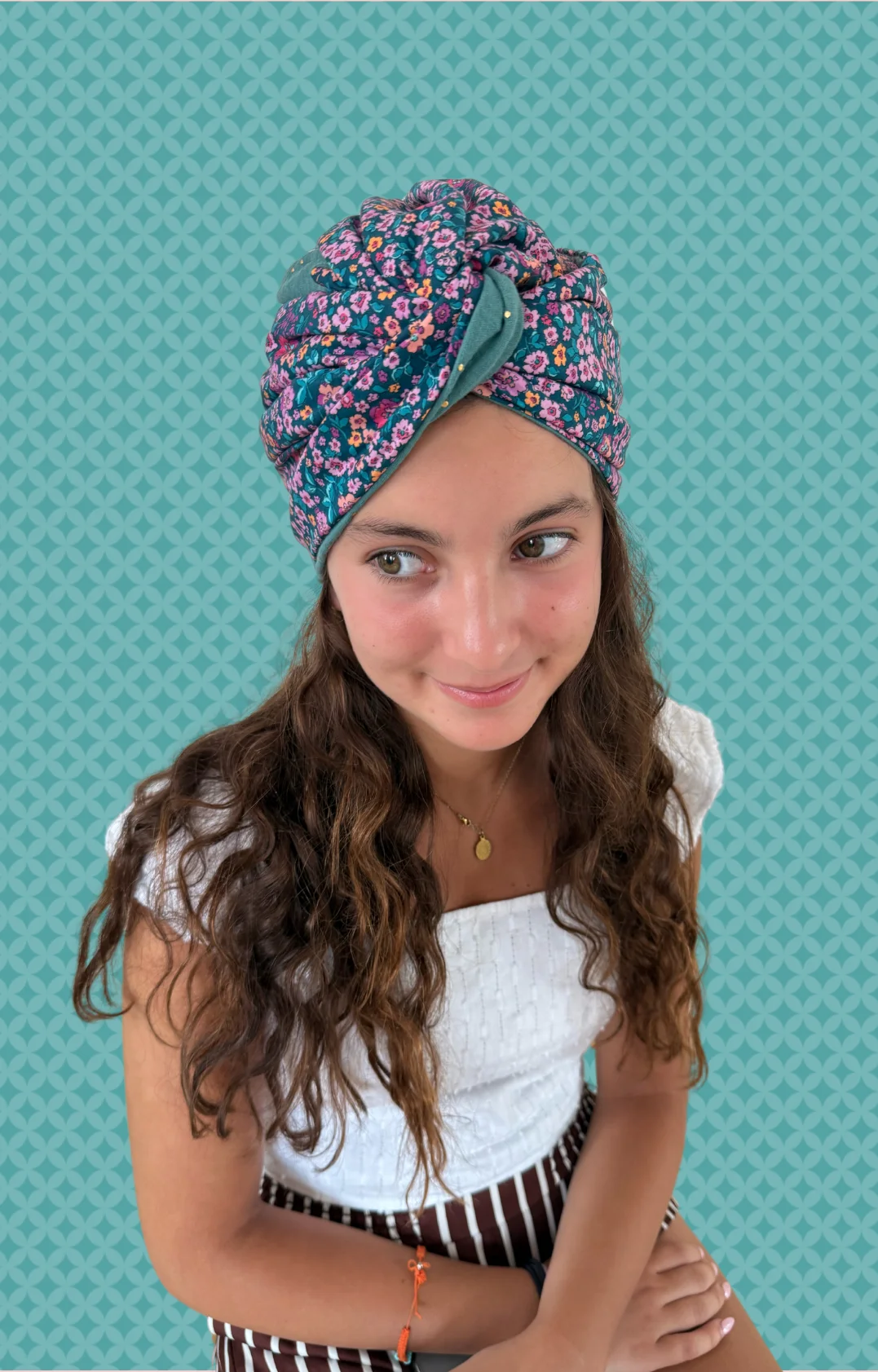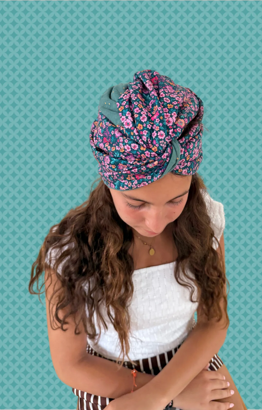 Turbante muy versátil de múltiples posiciones que son varios modelos en uno.