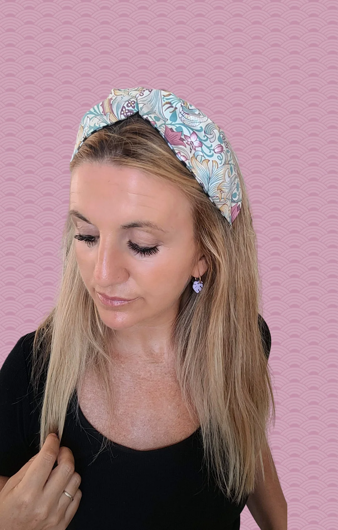 Turbante diadema de tela anudada montada sobre diadema interior metálica flexible. Lo que diferencia un turbante LAPÁN LAPÁN del resto es que se adaptan a la forma de la cabeza a la perfección, por eso a todo el mundo le sientan bien! Además, son comodísimos, no suelen apretar pero sí que sujetan el pelo, y, como la diadema interior es de un metal flexible, si lo necesitaras puedes cederla un poco.