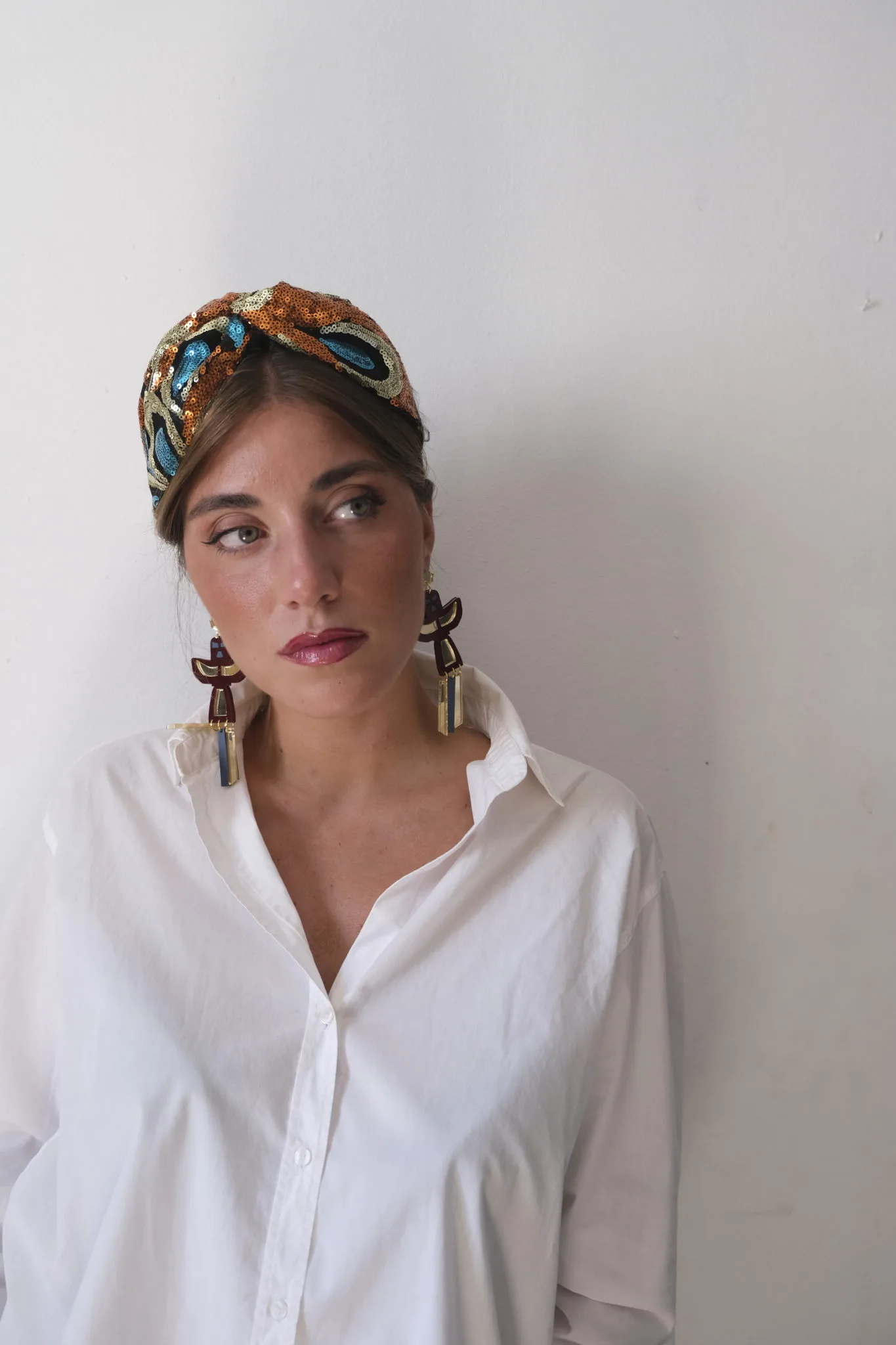 Sé el primero en valorar “Diadema turbante lentejuelas naranja y azul”