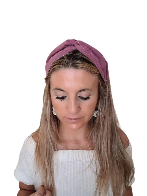 Sé el primero en valorar “Diadema turbante mujer morado puntos dorados”