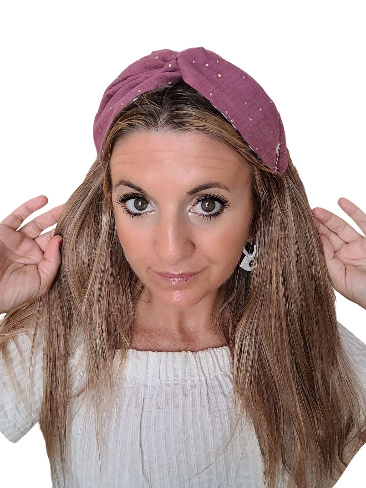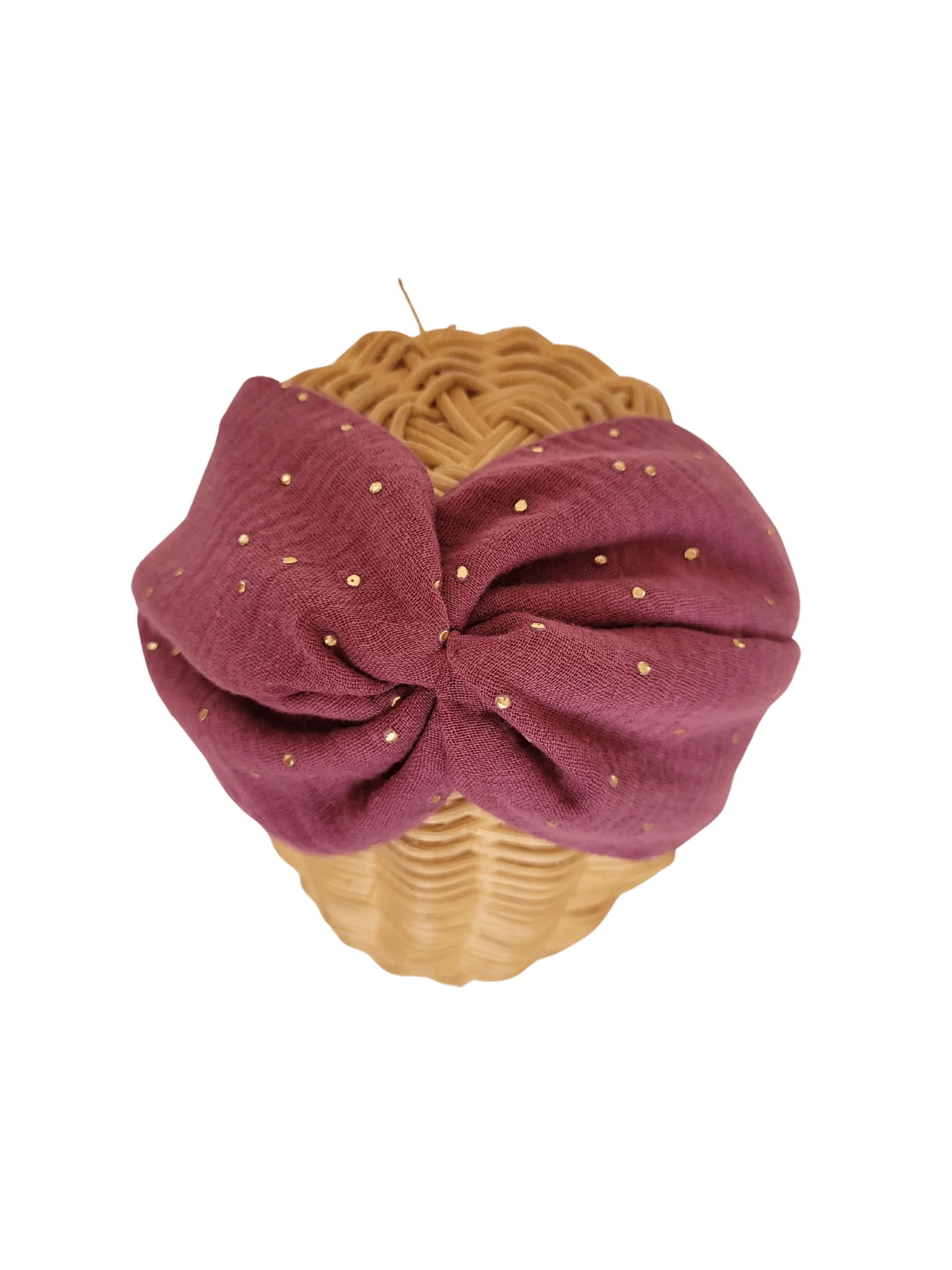 Sé el primero en valorar “Diadema turbante mujer morado puntos dorados”