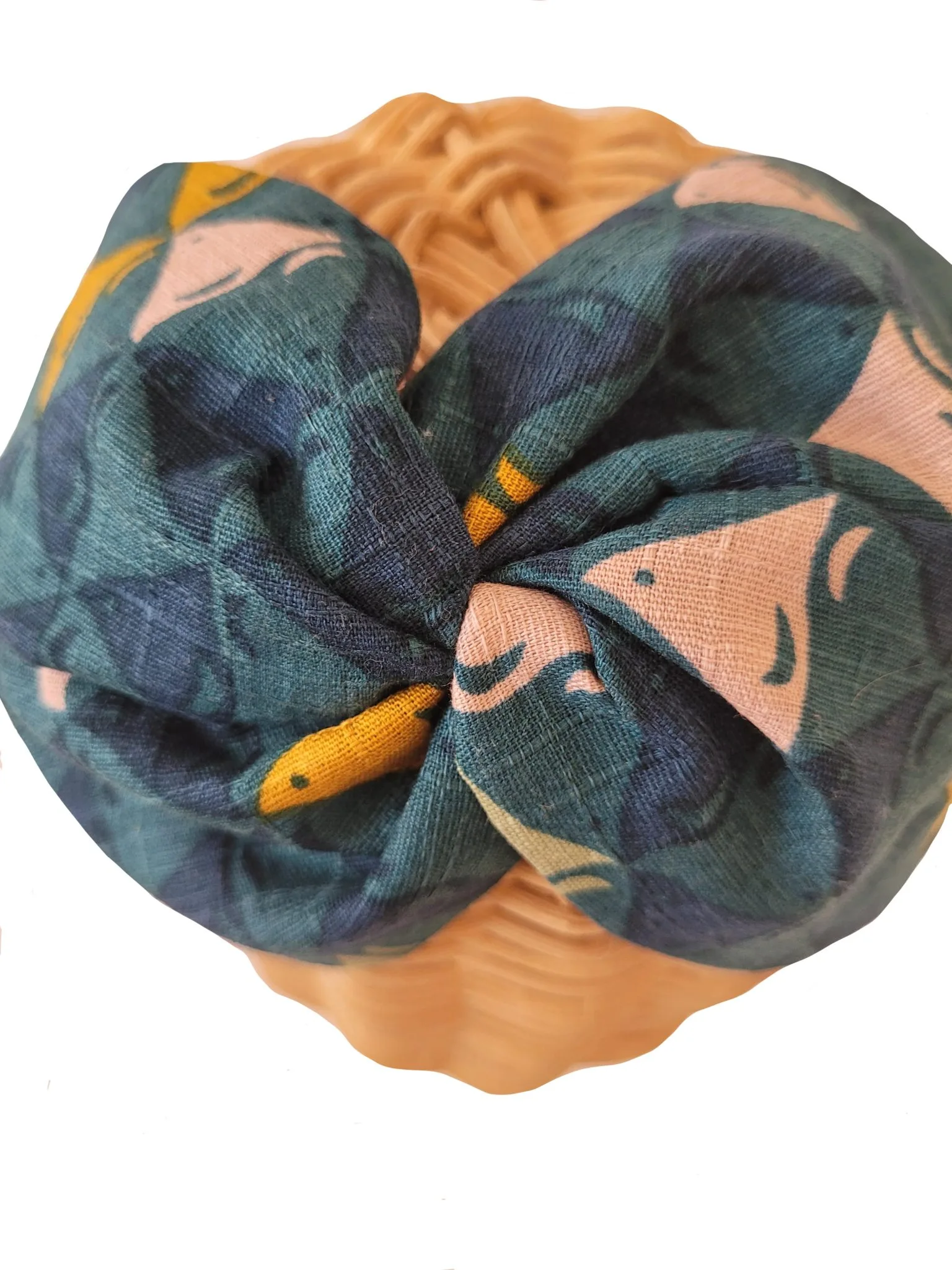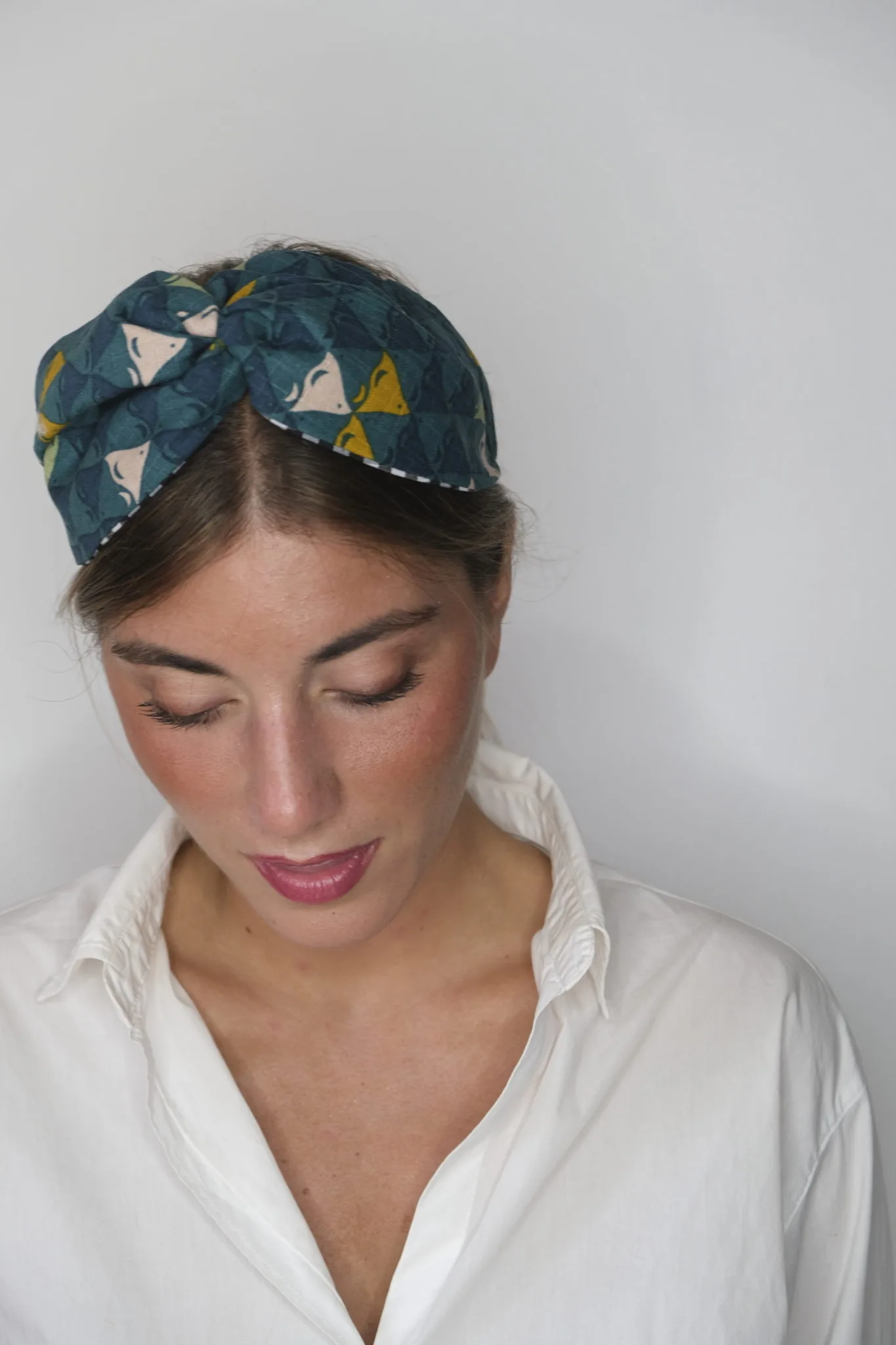 Sé el primero en valorar “Diadema turbante mujer tela japonesa peces fondo azul”