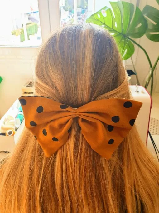 Lazo grande caramelo lunares negros