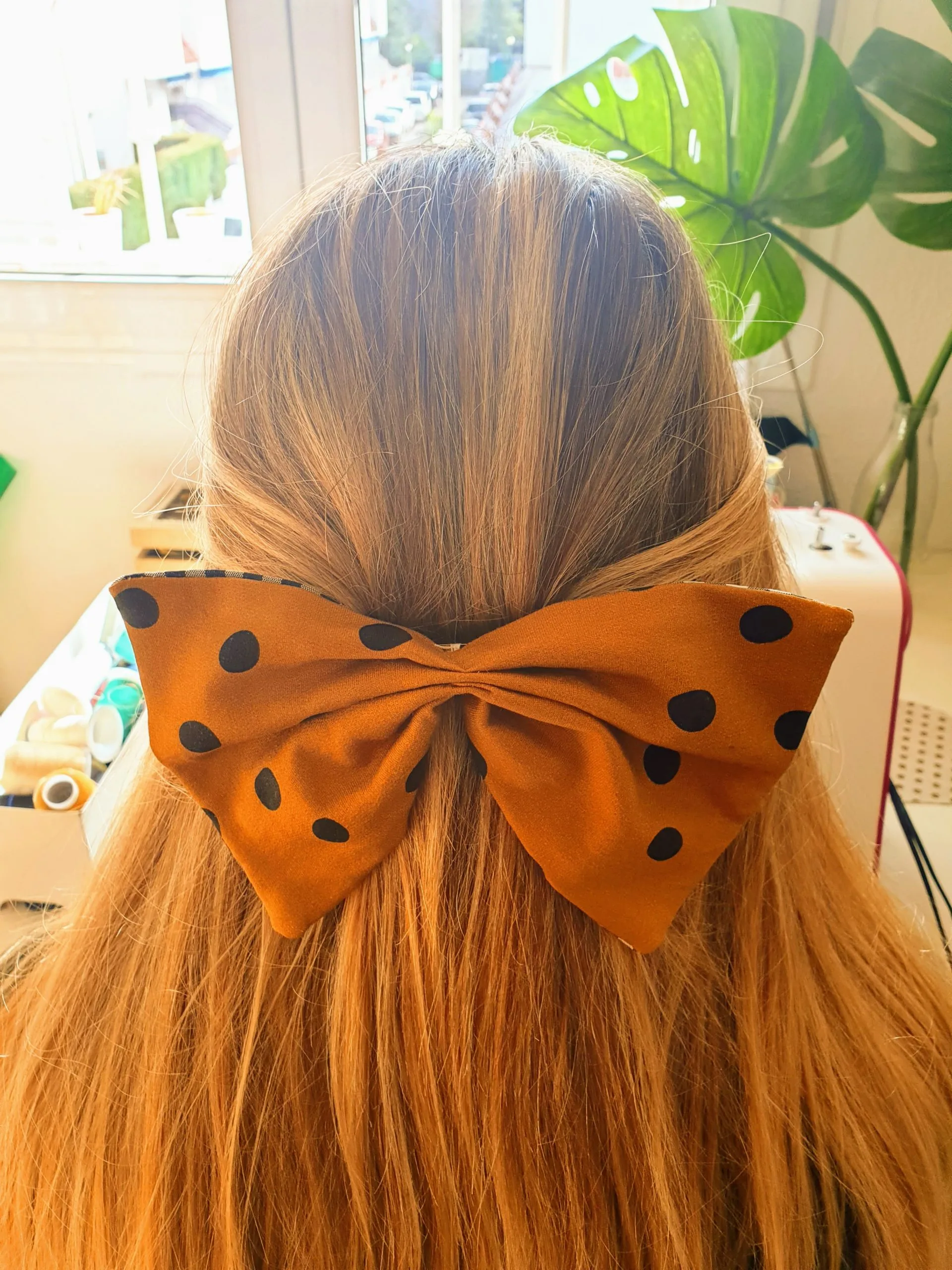 Lazo grande caramelo lunares negros