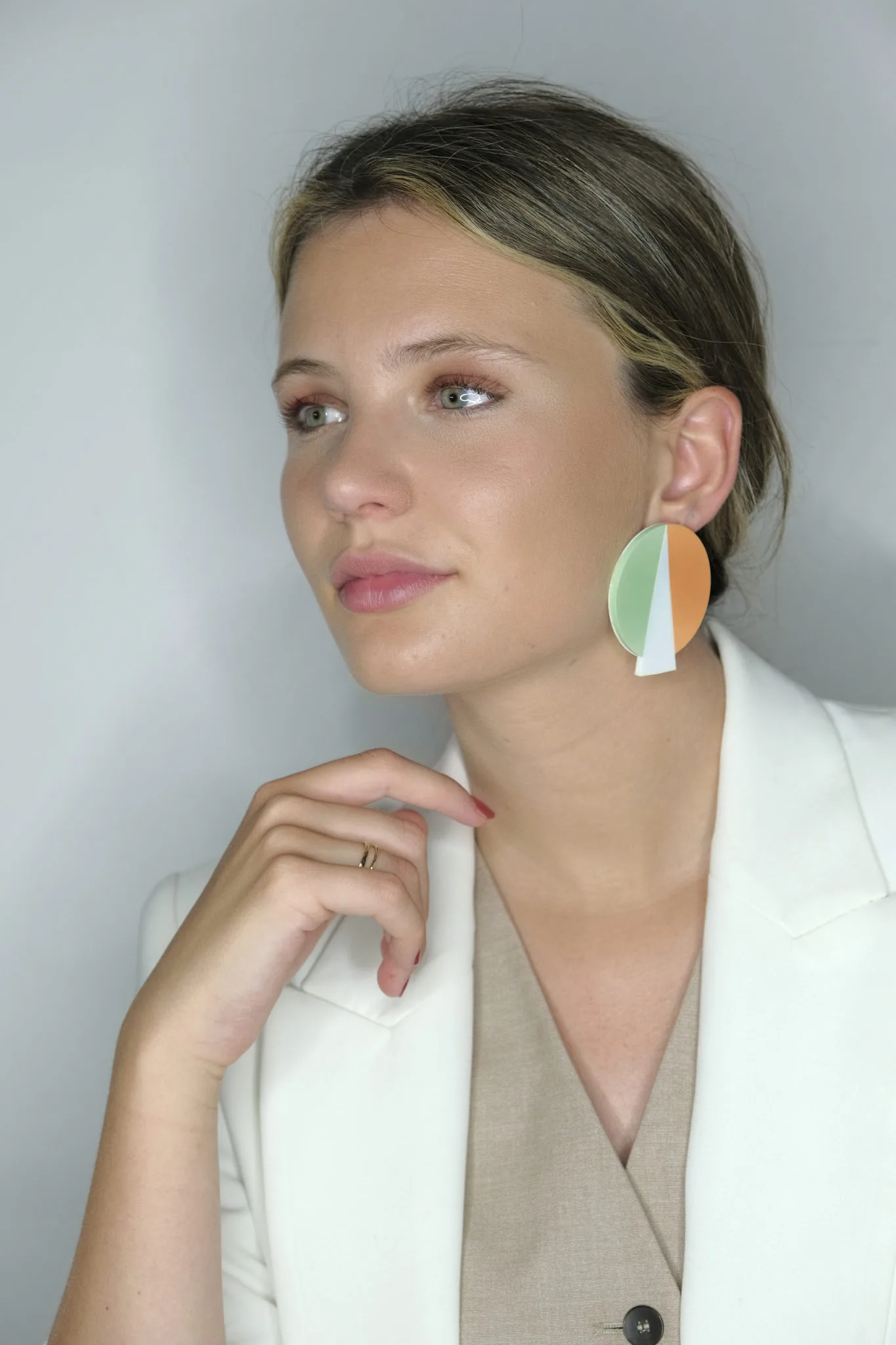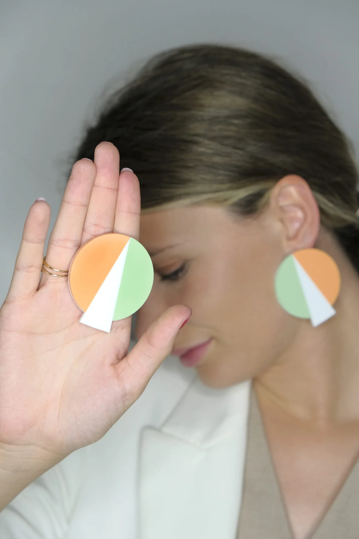 Verde mint, naranja pastel y blanco, tengo que darte algún dato más para que entiendas que no se puede favorecer más que este pendiente? No obstante sí, hay mas, la forma queda a la cara que te mueres!