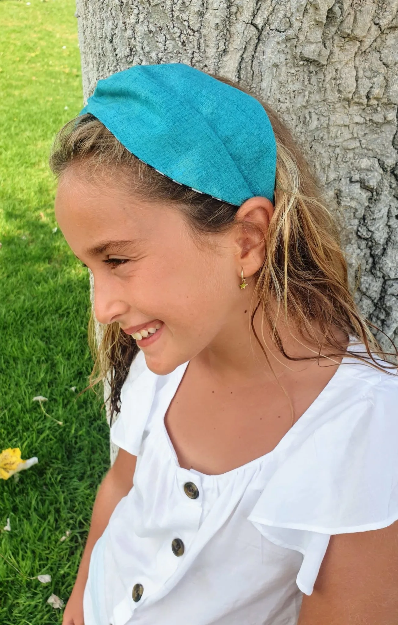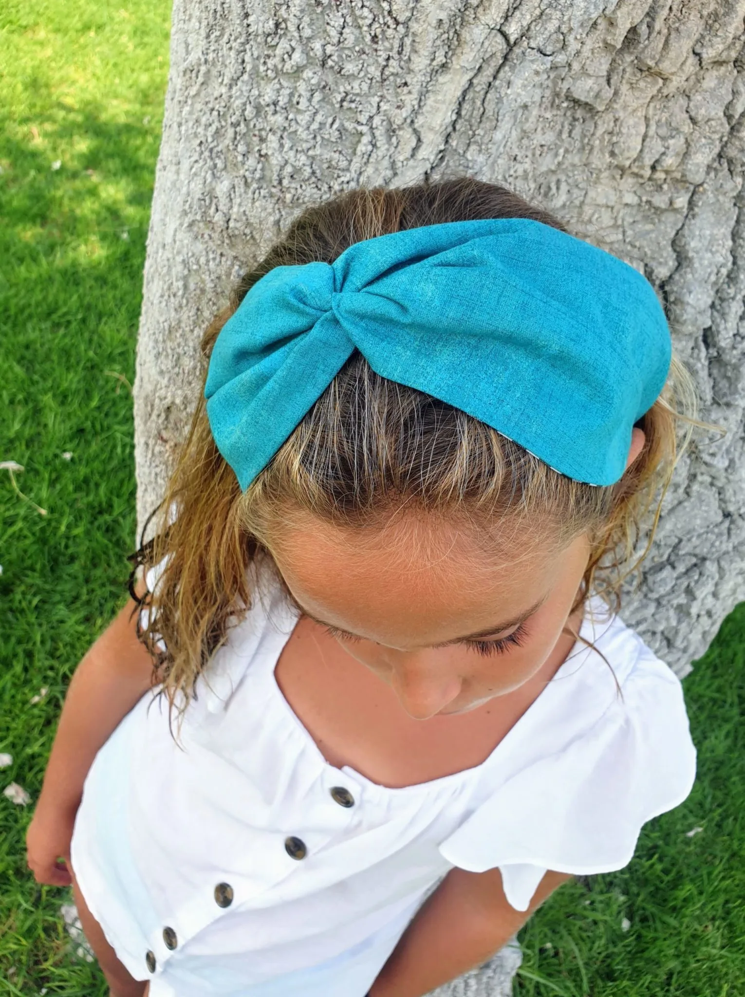Hacemos turbantes en dos anchos; estándar y pequeño. Este es el tamaño estándar. Lo que pretendemos es que tanto adultas como niñas y niñas pequeñas puedan lucir sus turbantes LAPÁN LAPÁN.