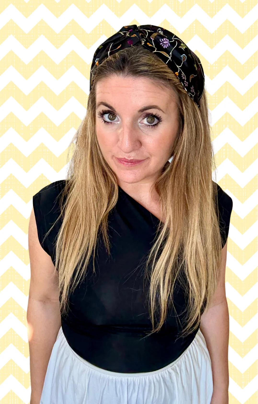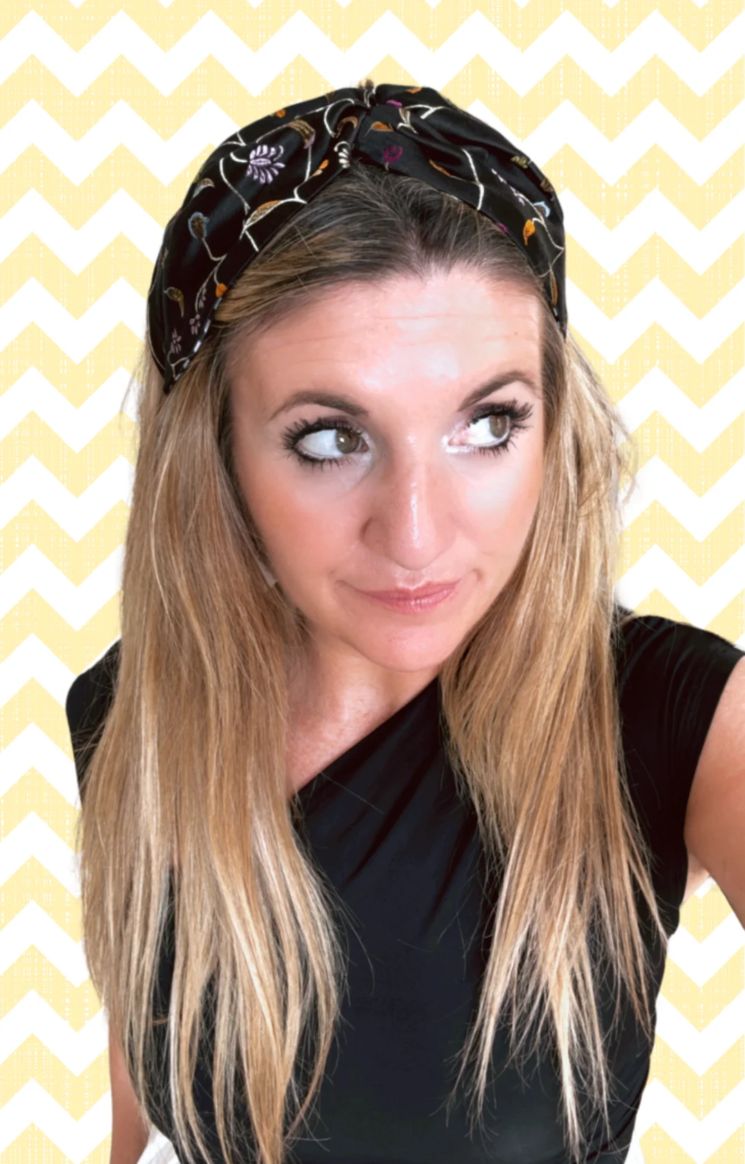 Turbante diadema flores bordadas fondo negro