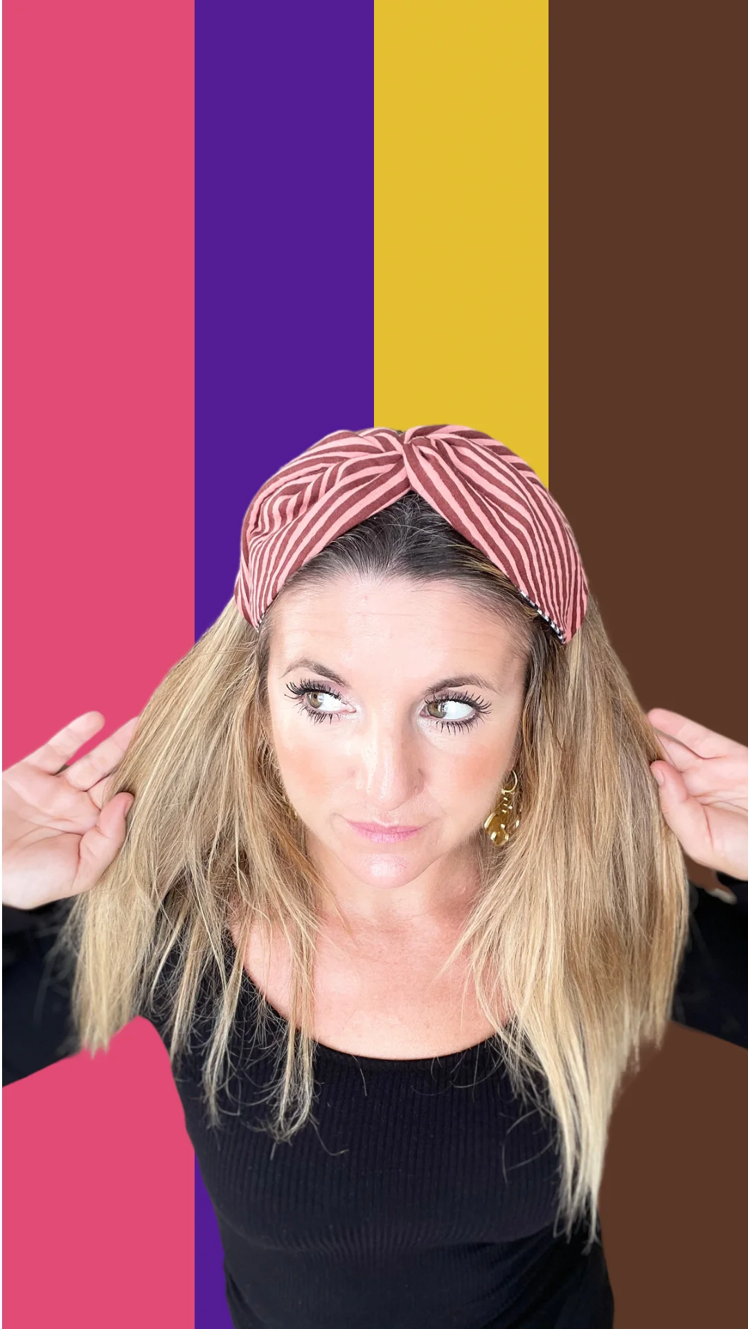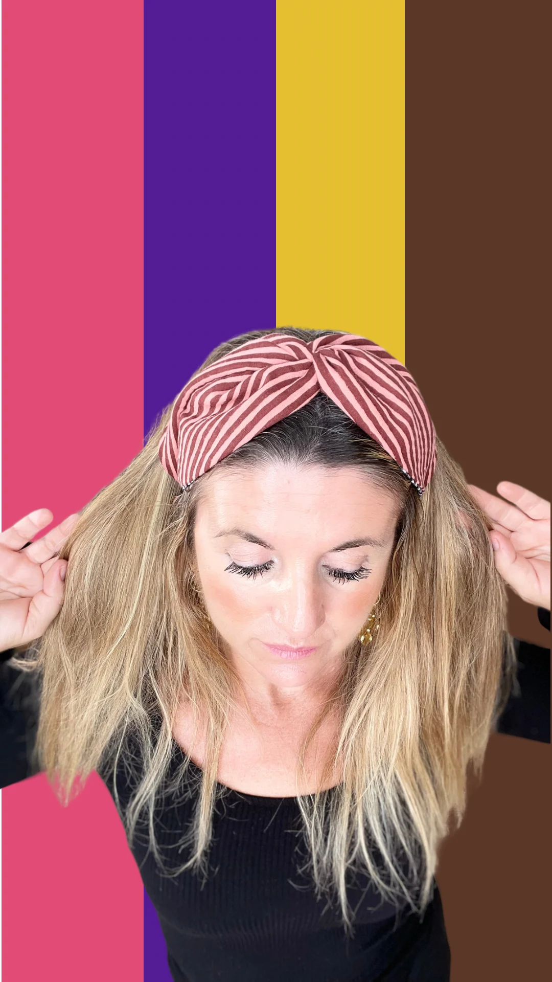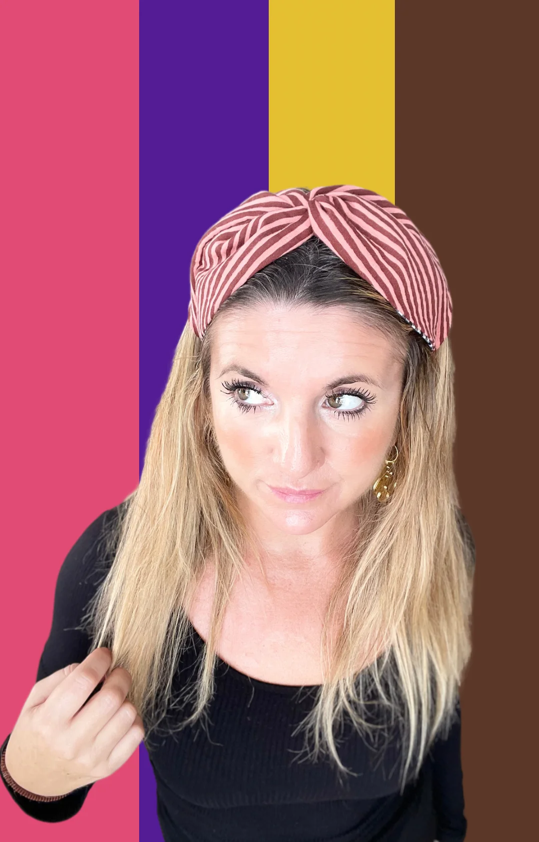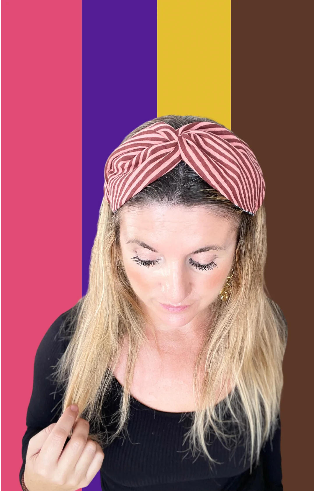 Sé el primero en valorar “Turbante diadema rayas burdeos y rosa empolvado”