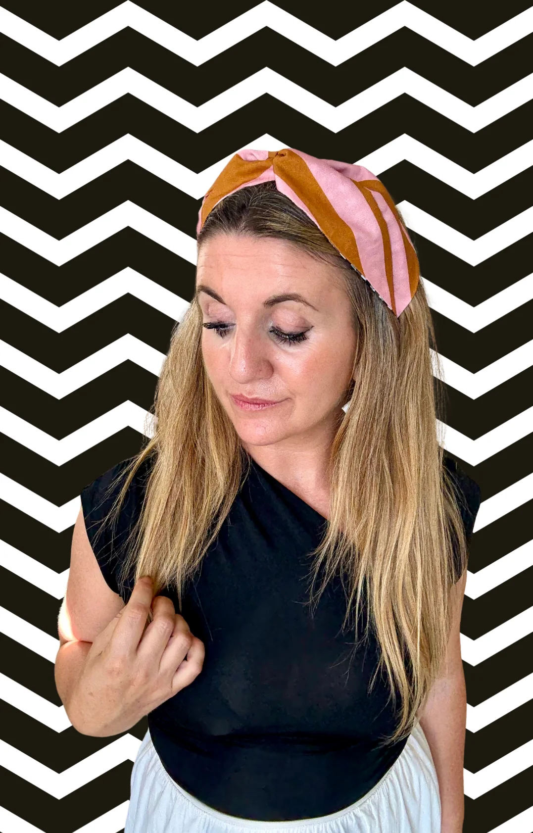 Turbante diadema rayas rosa y camel