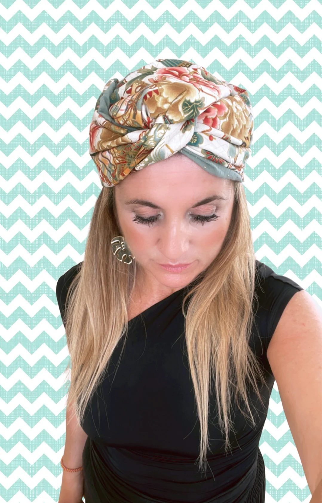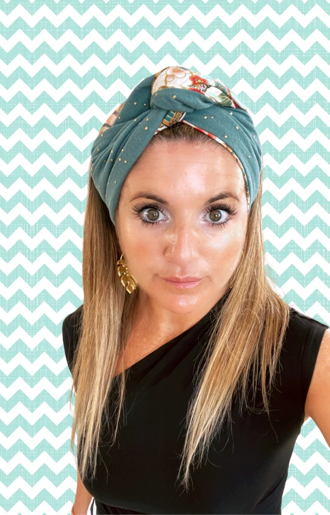 Turbante muy versátil de múltiples posiciones que son varios modelos en uno.