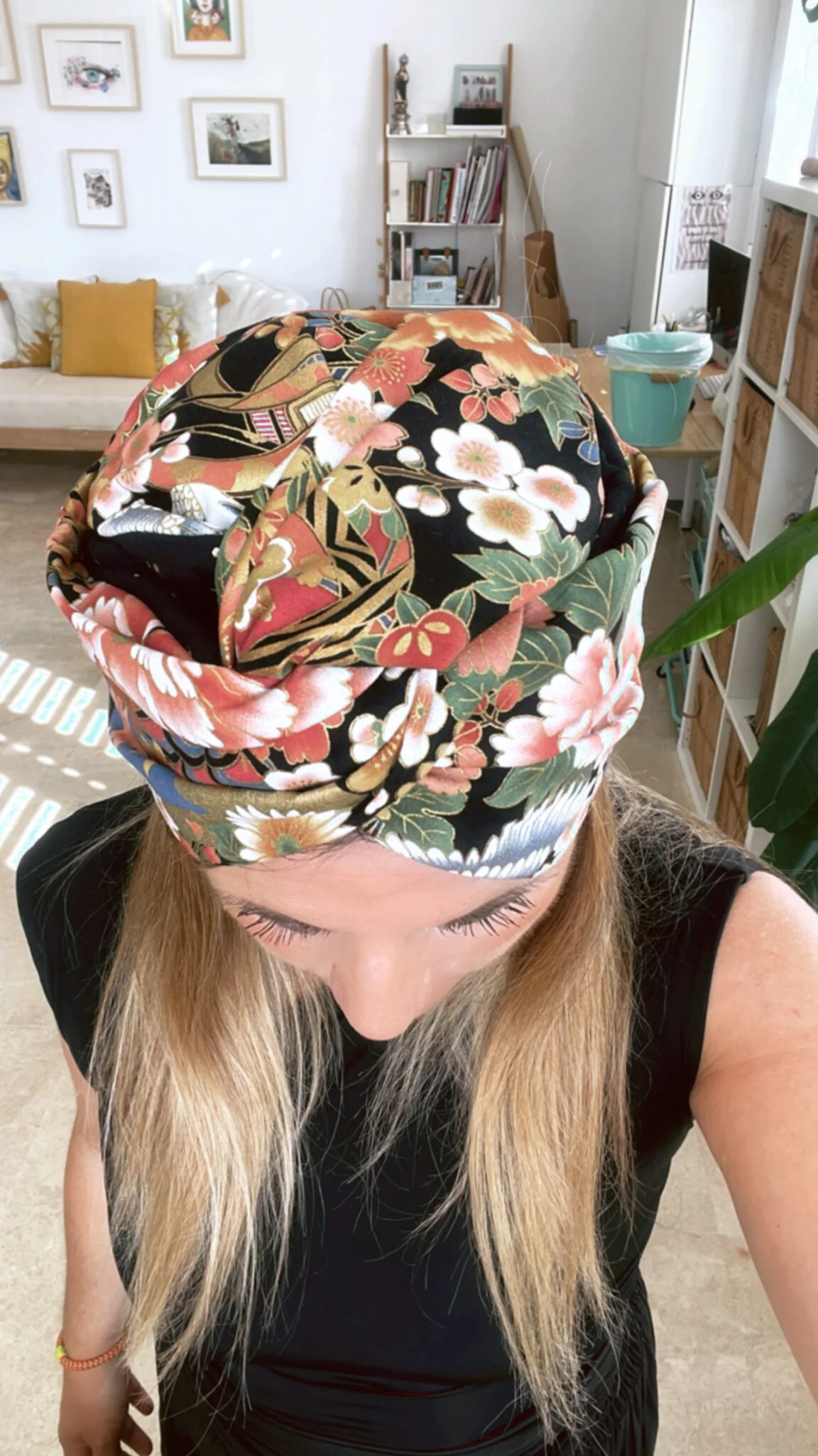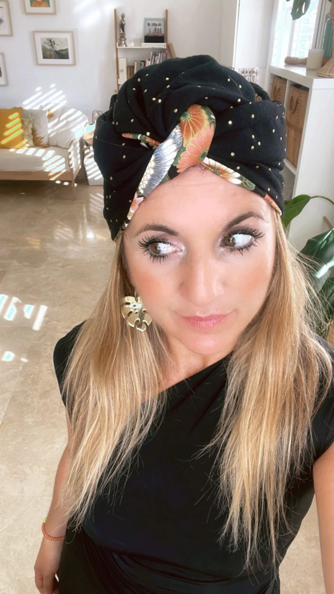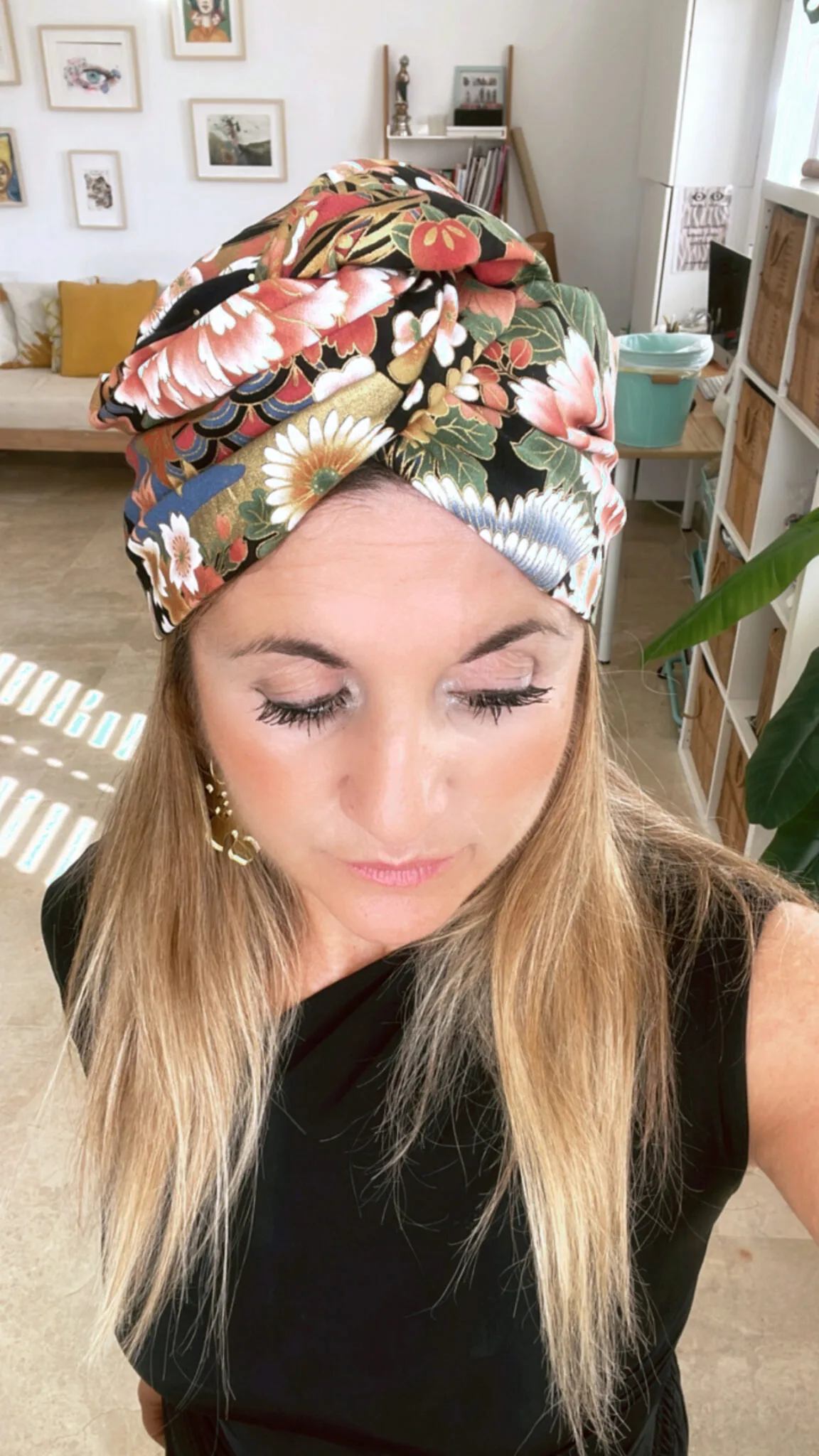 Turbante muy versátil de múltiples posiciones que son varios modelos en uno.