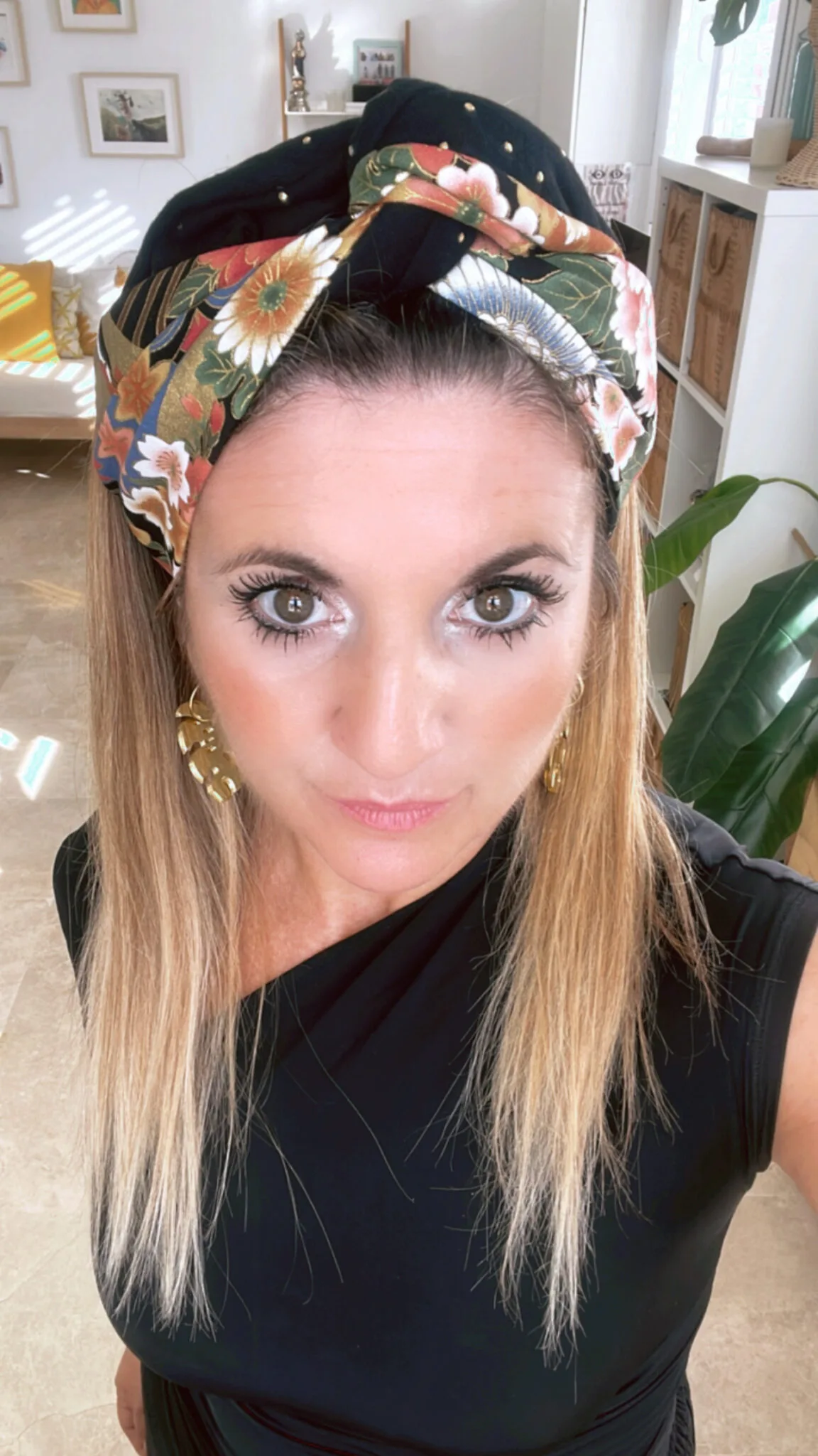 Puedes llevarlos cubriendo toda la cabeza o modo pañuelo (ver fotos de otros modelos). Son sencillos de poner, puedes ir a este vídeo donde verás dos propuestas de cómo llevarlos, pero feel free para ser creativa, porque el flexible y maleable alambre interior que lleva, se adaptará a TODO lo que quieras hacer .