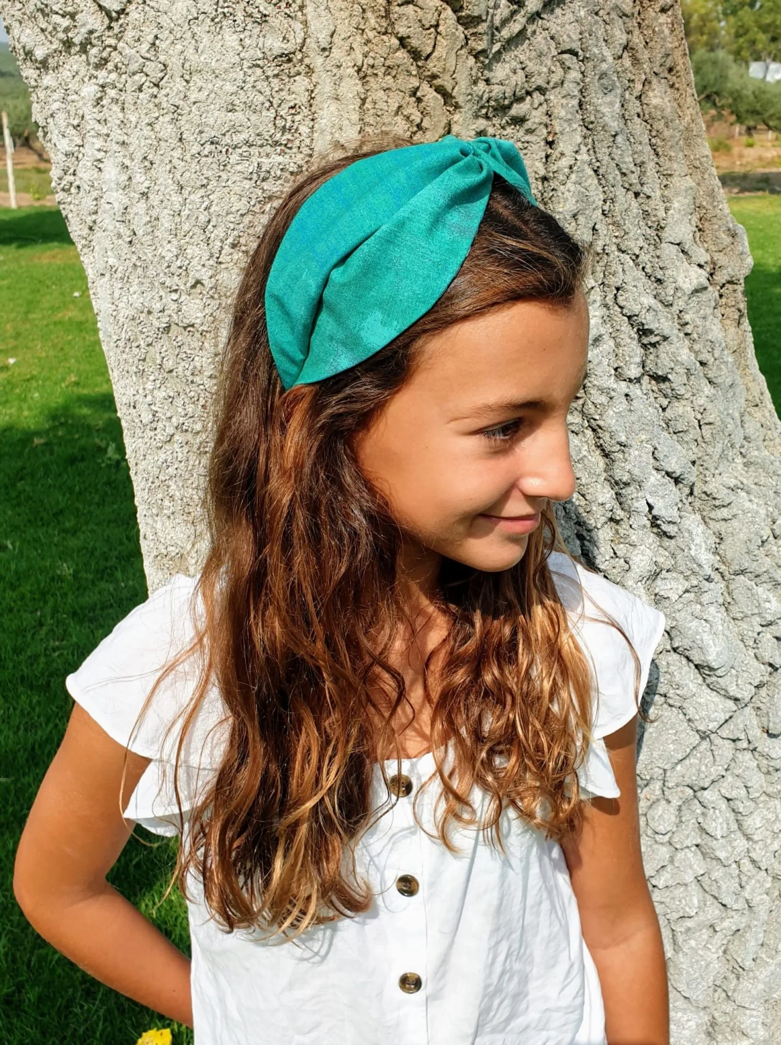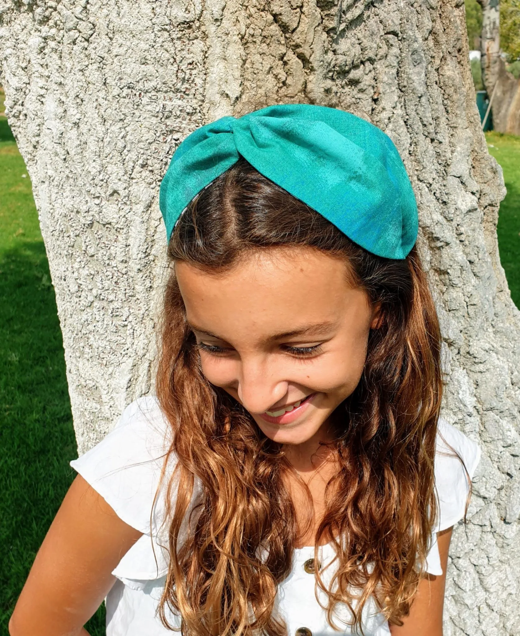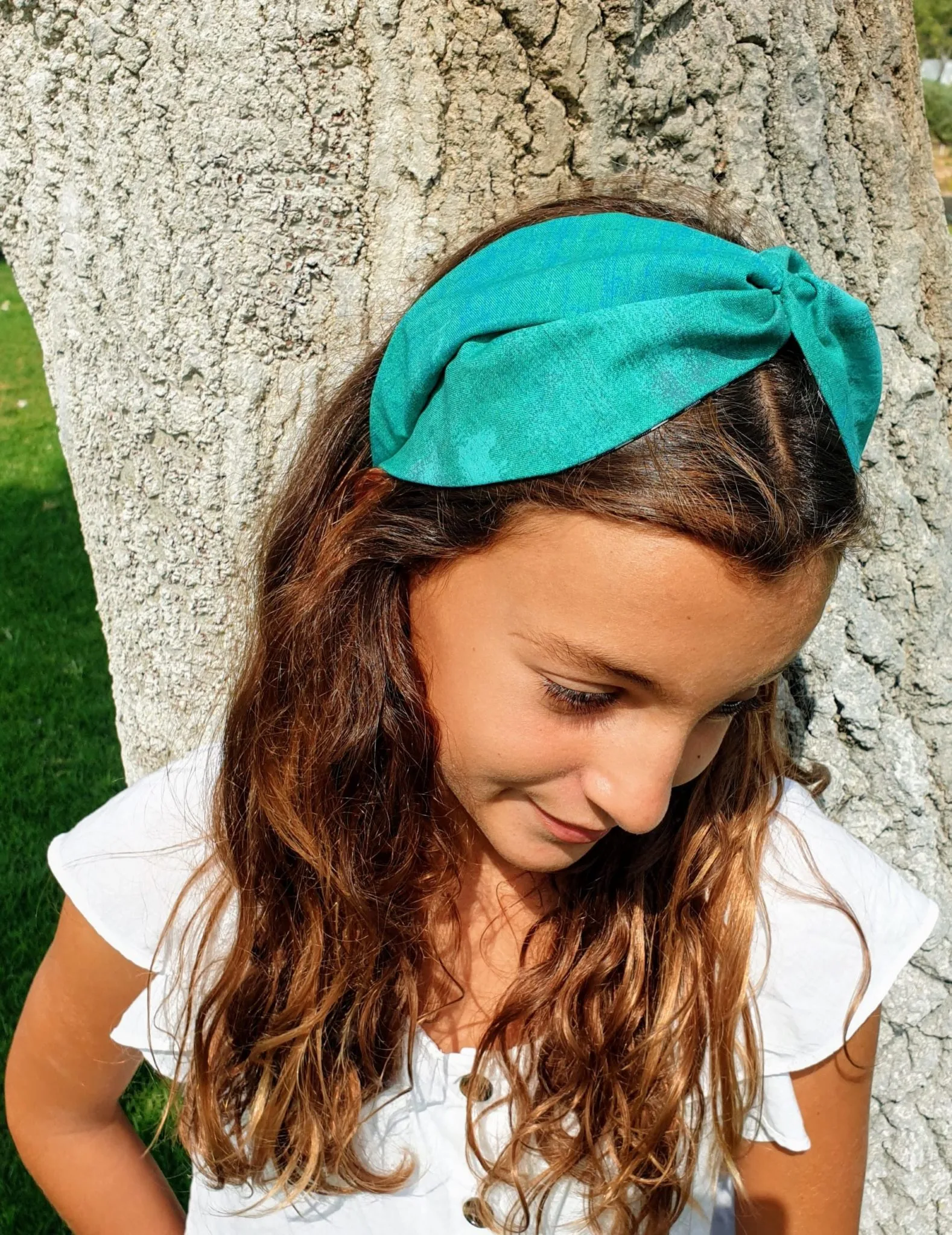Hacemos turbantes en dos anchos; estándar y pequeño. Este es el tamaño estándar. Lo que pretendemos es que tanto adultas como niñas y niñas pequeñas puedan lucir sus turbantes LAPÁN LAPÁN.