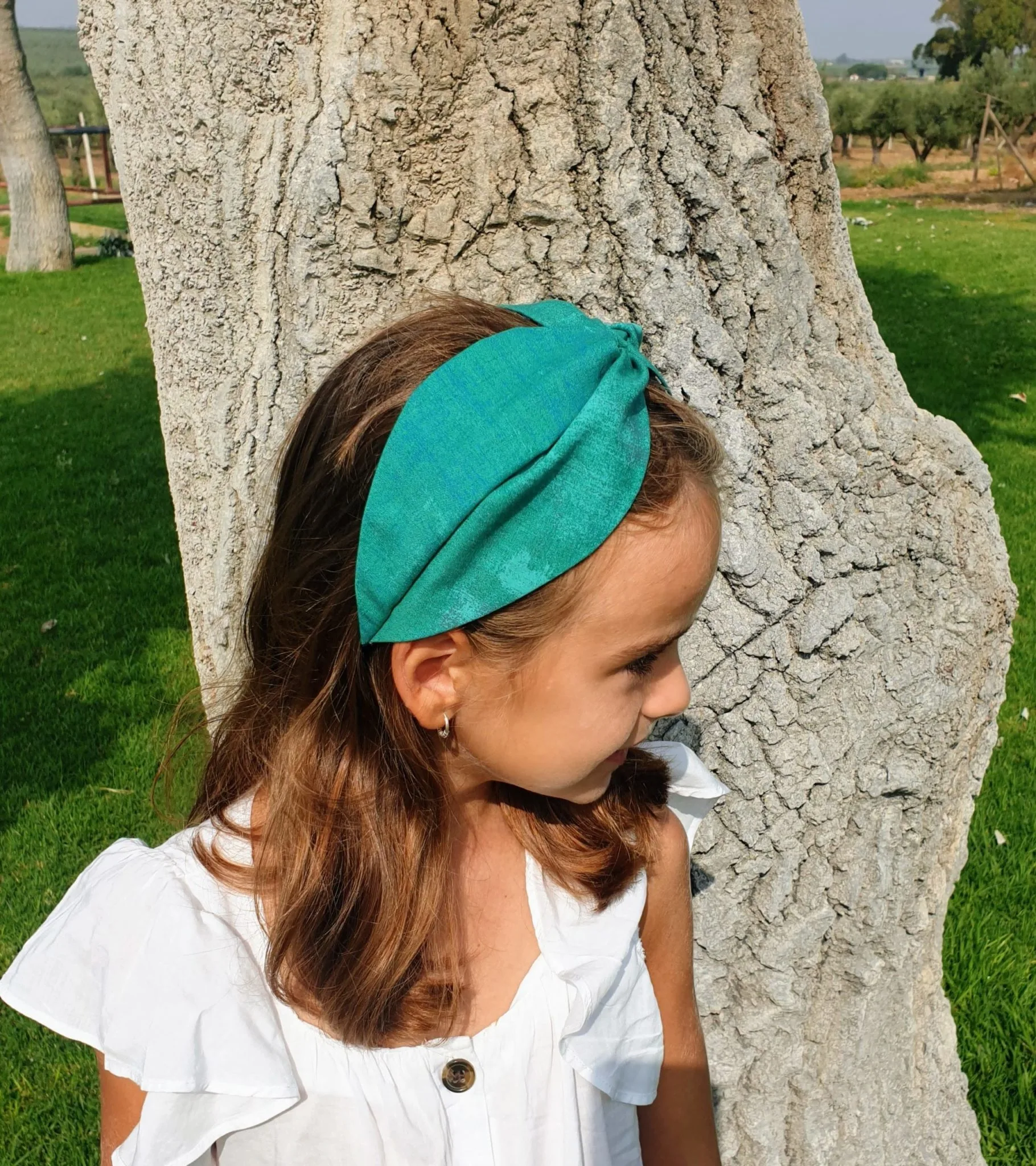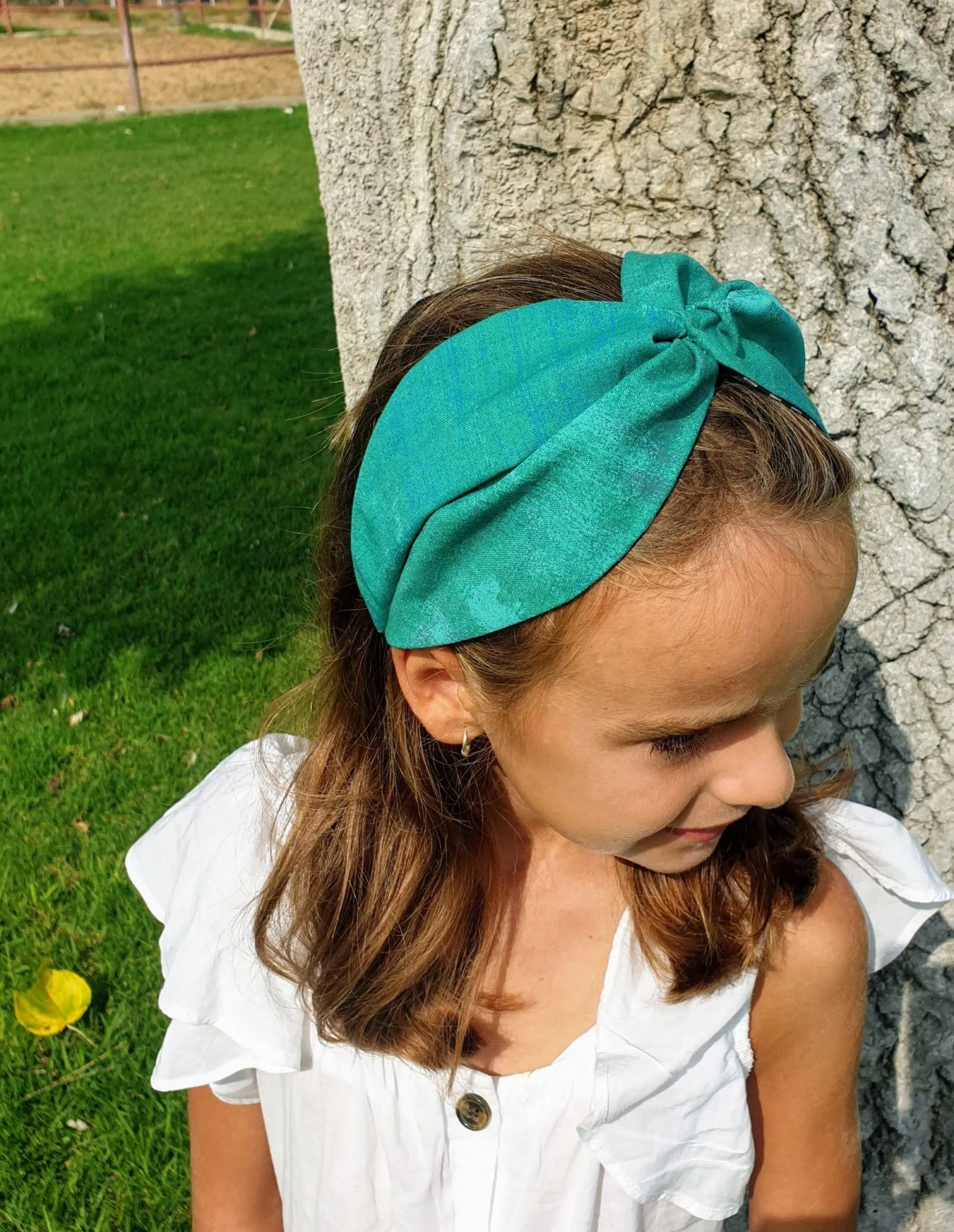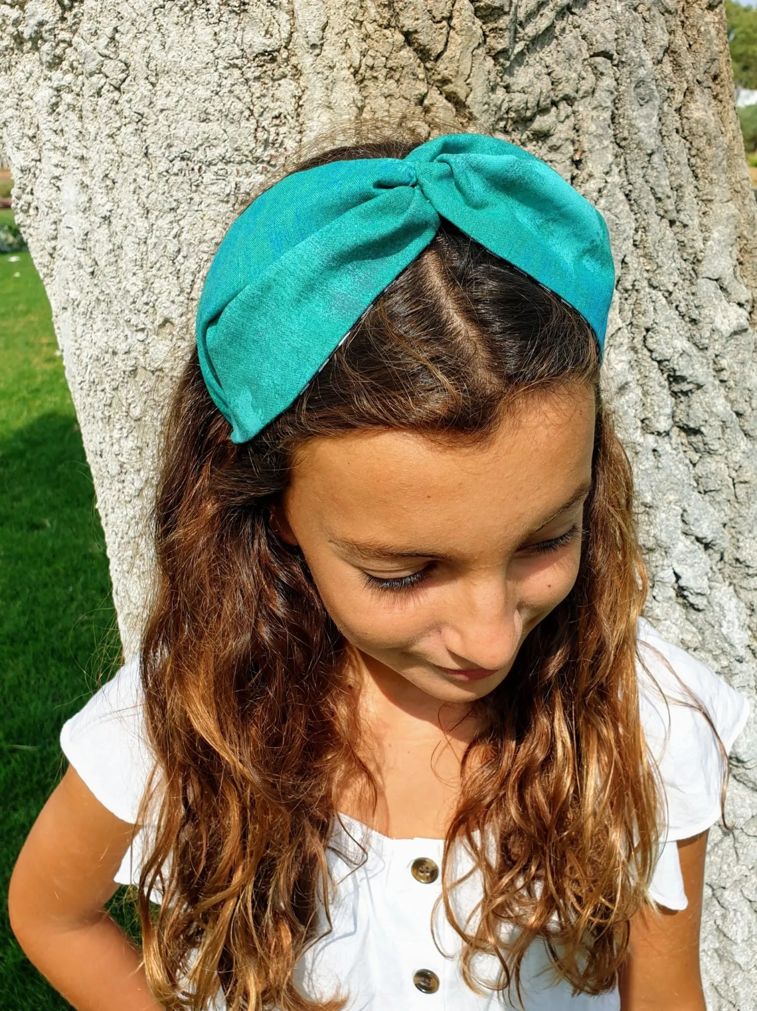 Hacemos turbantes en dos anchos; estándar y pequeño. Este es el tamaño estándar. Lo que pretendemos es que tanto adultas como niñas y niñas pequeñas puedan lucir sus turbantes LAPÁN LAPÁN.